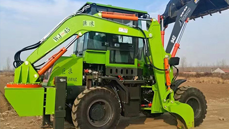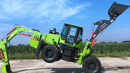 連接復合動作一拖二操作手柄,簡介易操作由于它具有共同的結構,前端是裝載設備,后端為發(fā)掘設備。在施工時,操作手只需求翻滾一下座椅,就可以結束從裝載機到發(fā)掘機的改動